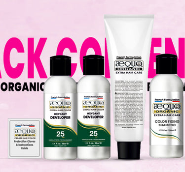 The included Aequo Organic Color Fixing Shampoo helps seal in color, enhance shine, and protect hair for long-lasting results and soft, manageable texture.