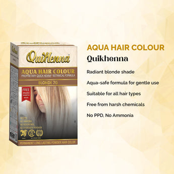 Transform your hair color experience with QuikHenna AQUA Powder Hair Color in 7G Blonde, and enjoy vibrant, healthy-looking hair with ease and confidence.