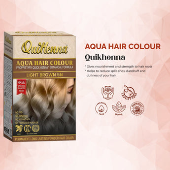Upgrade your hair color routine with QuikHenna AQUA Powder Hair Color in 5N Natural Light Brown, and embrace vibrant, healthy-looking hair with confidence.