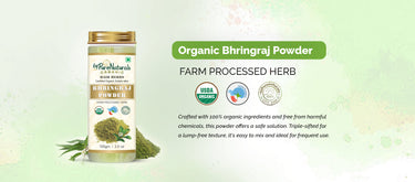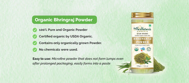 Made from shade-dried bhringraj leaves, this powder is chemical-free, preservative-free, and suitable for all hair and skin types.