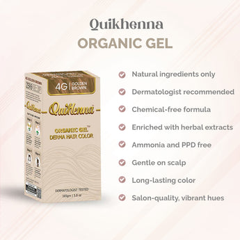 Embrace the benefits of natural, organic hair coloring with QuikHenna Organic Gel Derma Hair Color in 4G Golden Brown. Achieve beautiful, healthy-looking hair with ease!
