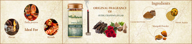 • Fragrances: Includes three natural aromas – Oudh (Agarwood), Chandan (Sandalwood), and Gulab (Rose).