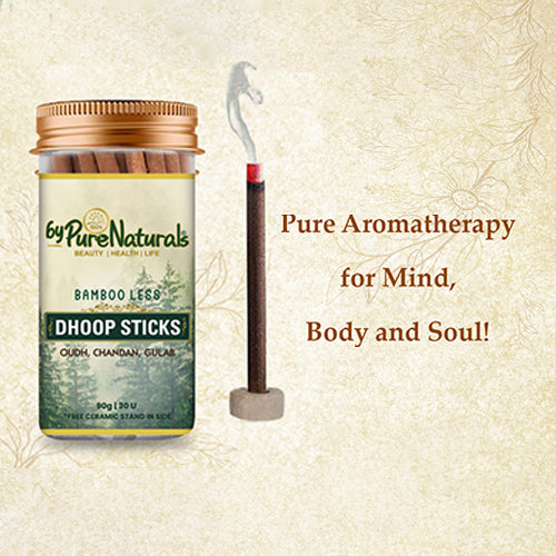 Elevate your senses and your space naturally with the harmonious blend of byPureNaturals Bamboo Less Incense Dhoop Sticks Pack—pure fragrances for pure moments.