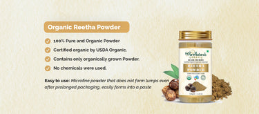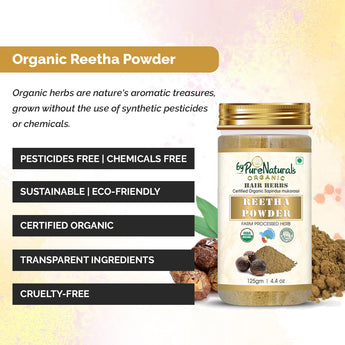 Experience the natural goodness of PureNaturals Organic Reetha Powder for radiant skin and luscious hair. Made from premium quality reetha fruit, this powder is free from toxins and additives, ensuring purity and effectiveness. Certified organic and chemical-free, it's a safe choice for skincare and haircare routines. Enjoy its cleansing, conditioning, and nourishing properties, promoting healthy hair growth and glowing skin. Elevate your beauty regimen with PureNaturals Organic Reetha Powder and unlock the secrets of nature's purity.