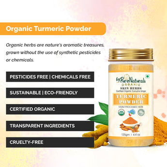 Experience the age-old beauty secret with byPureNaturals 100% Organic Turmeric Powder, rich in curcumin and antioxidants. Specially formulated for skin and hair use, this pure herbal powder helps brighten the complexion, reduce acne and blemishes, and calm inflammation. When used on hair, it supports scalp health and helps fight dandruff, promoting a clean and balanced scalp environment.
