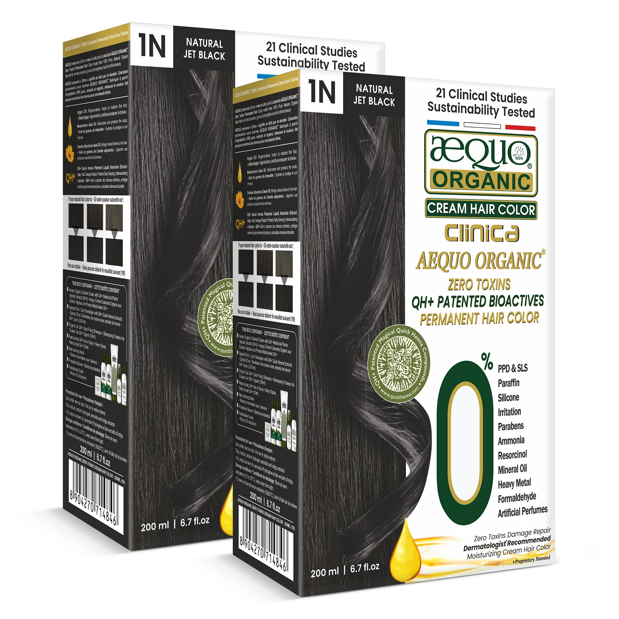 QH+ Aequo Organic Clinica Zero Toxins Permanent Cream Hair Color – 1N Natural Jet Black (200 ml)