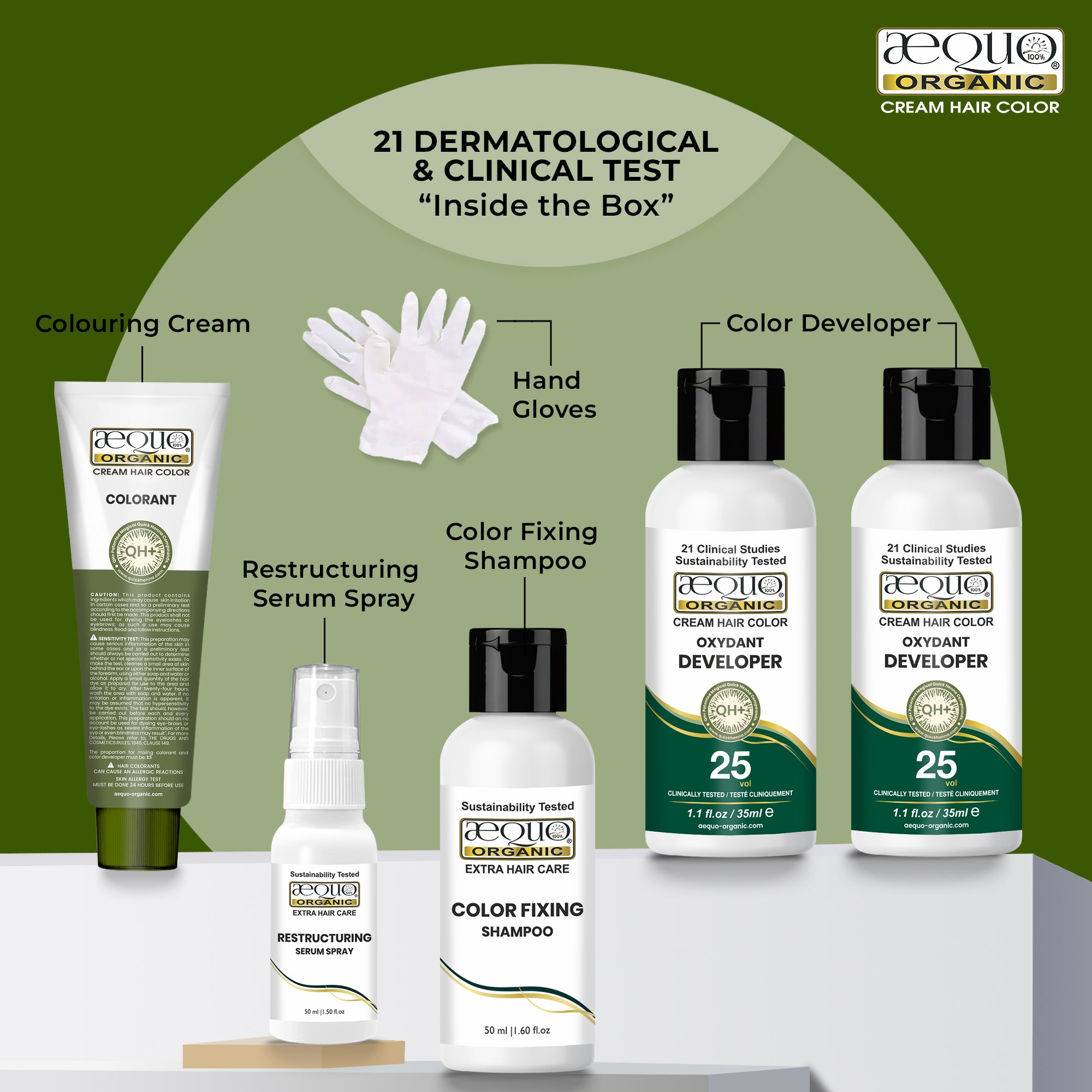 Experience the power of nature with Aequo Organic Cream Hair Color, enriched with the Quick Henna Patented Hair Care Molecule and paired with a Aequo Organic Hair Color Fixing Shampoo and Aequo Organic Hair Restructuring Serum for salon-quality results at home.