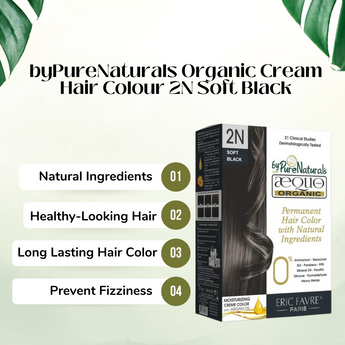 Introducing the byPureNaturals Organic Cream Hair Colour, a premium blend of nature's finest ingredients for vibrant, healthy-looking hair. Crafted with organic botanicals, this gentle formula is free from harsh chemicals like ammonia and parabens, ensuring a nourishing coloring experience. Designed for those who prioritize natural beauty and wellness, our organic cream hair colour delivers rich, long-lasting color without compromising on hair health. Whether you're covering gray or simply enhancing your natural hue, embrace the beauty of organic hair care with byPureNaturals. Experience salon-quality results in the comfort of your own home with our Organic Cream Hair Colour.