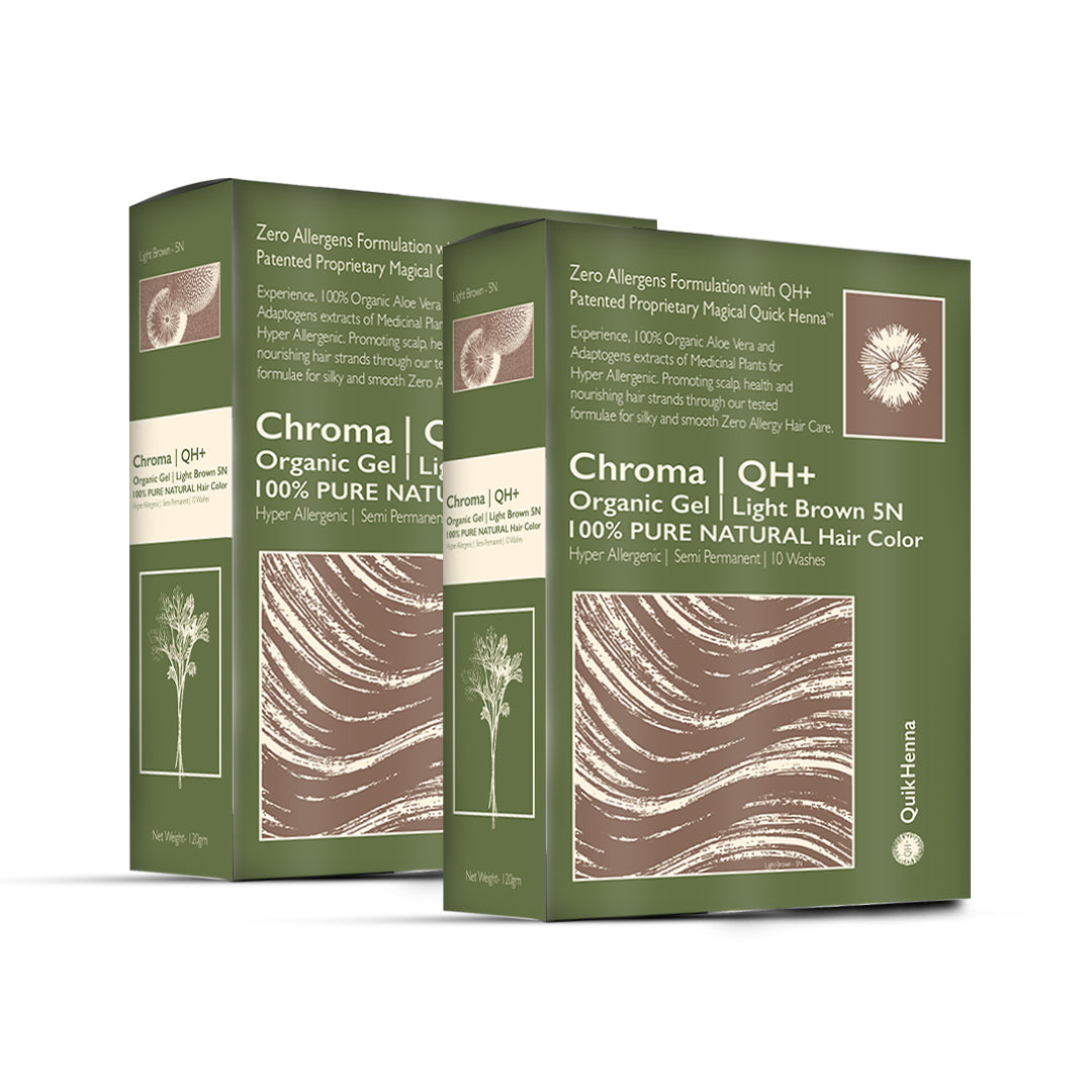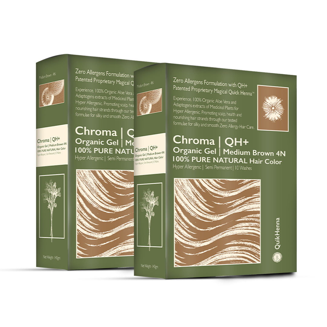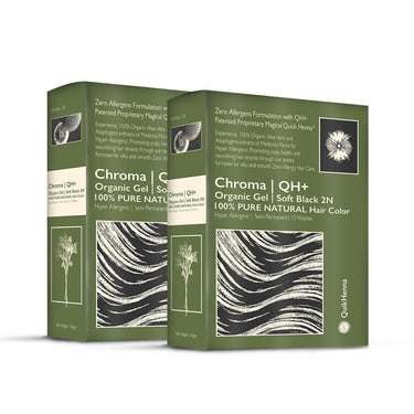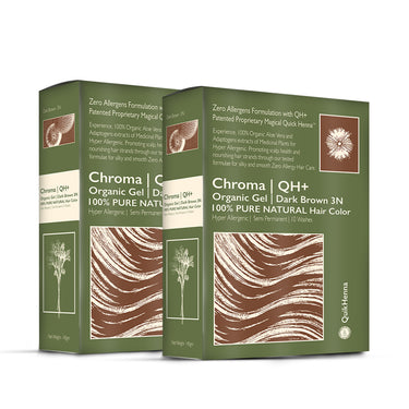 Transform your hair naturally with our QH+ QuikHenna Chroma Organic Gel 100% Natural Hair Color available in 4 Color shades - 2N Soft Black, 3N Dark Brown, 4N Medium Brown and 5N Light Brown! Specially formulated for those seeking vibrant, long-lasting color without chemicals, our gel hair color is perfect for all hair types.
