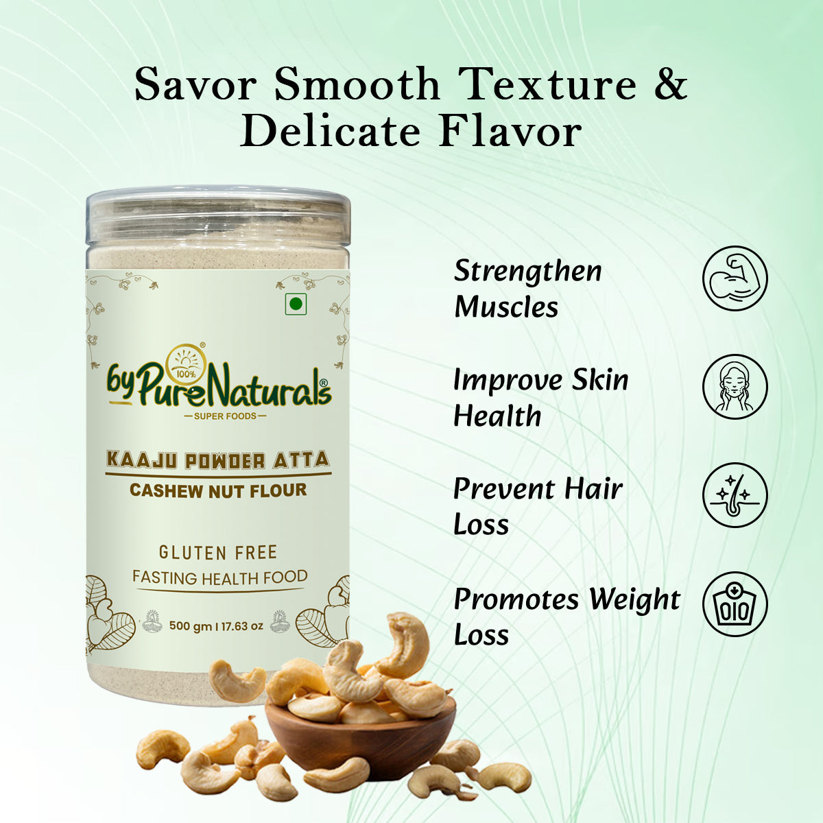 Whether you're cooking for a festive fast or crafting gourmet recipes, byPureNaturals Kaju Atta adds richness, nutrition, and purity in every bite.