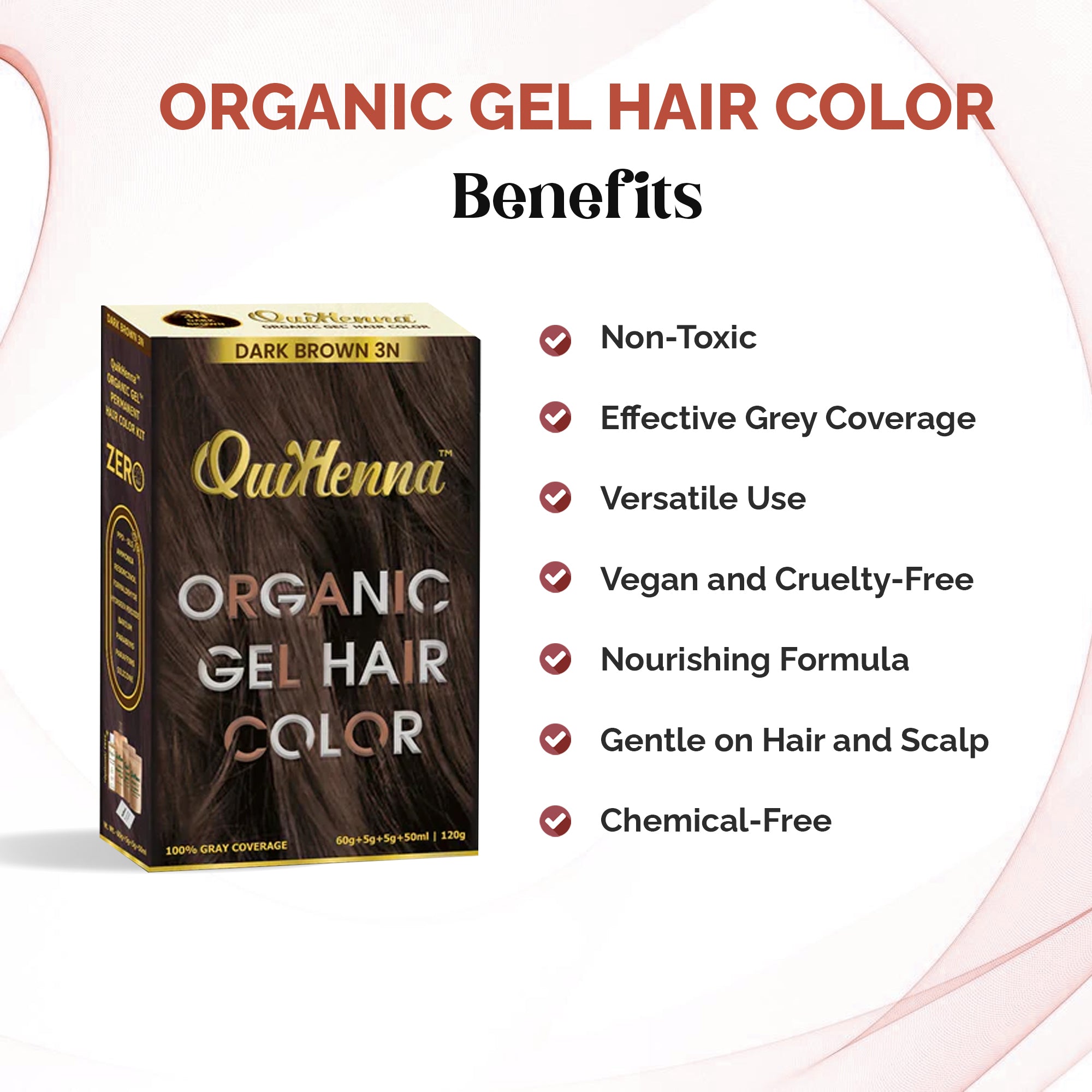 Color your hair the natural way with QuikHenna Organic Gel Hair Color, a PPD-free, Ammonia-free, and Hydrogen Peroxide free formula enriched with the Quick Henna Patented Hair Care Molecule. This smooth, non-drip gel-based color offers 100% grey coverage, vibrant tone, and deep nourishment — all in one easy step.
