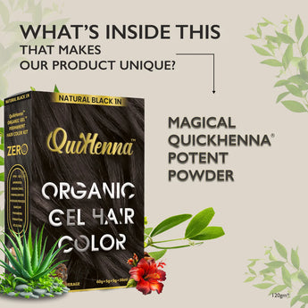 Color your hair the natural way with QuikHenna Organic Gel Hair Color, a PPD-free, Ammonia-free, and Hydrogen Peroxide free formula enriched with the Quick Henna Patented Hair Care Molecule. This smooth, non-drip gel-based color offers 100% grey coverage, vibrant tone, and deep nourishment — all in one easy step.
