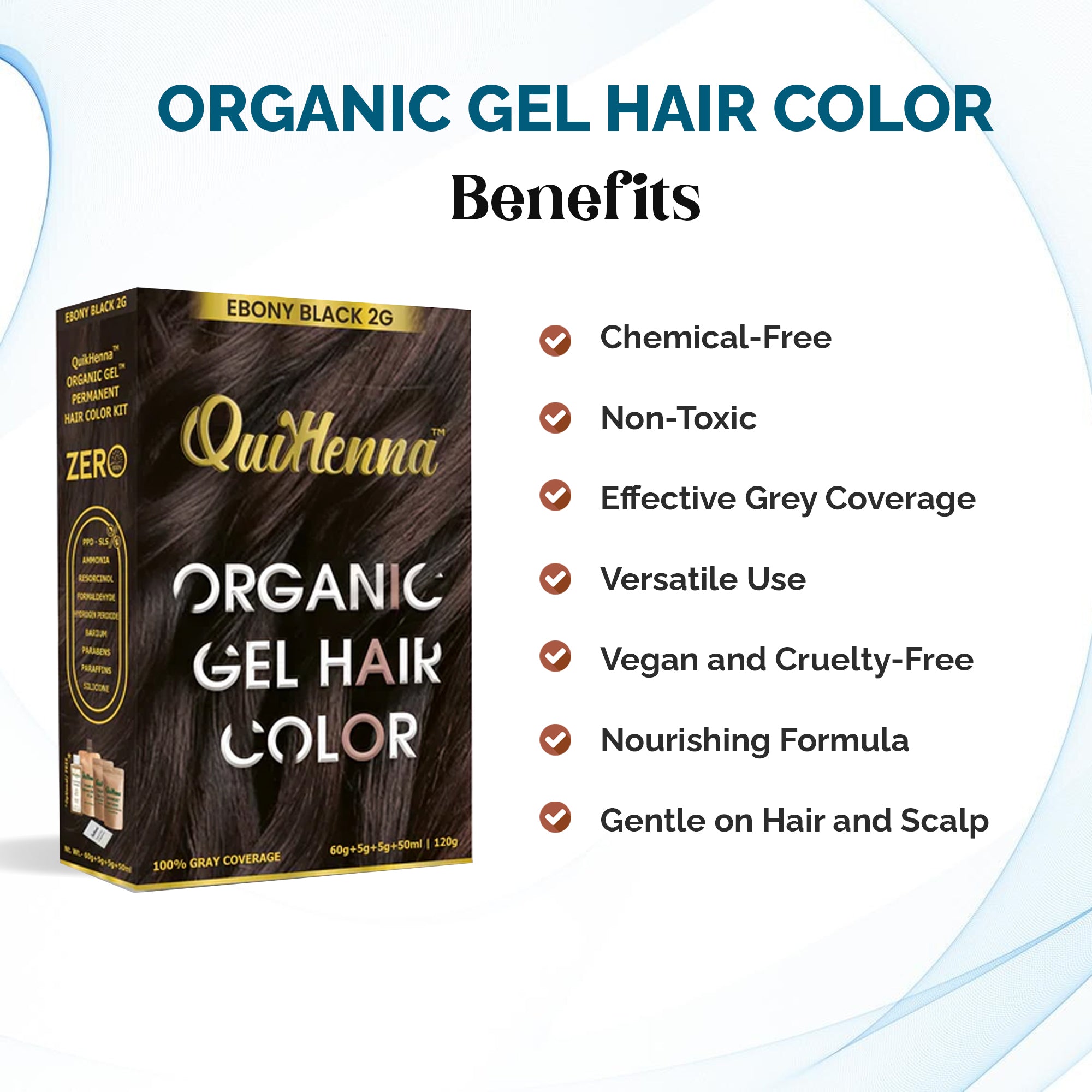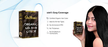Color your hair the natural way with QuikHenna Organic Gel Hair Color, a PPD-free, Ammonia-free, and Hydrogen Peroxide free formula enriched with the Quick Henna Patented Hair Care Molecule. This smooth, non-drip gel-based color offers 100% grey coverage, vibrant tone, and deep nourishment — all in one easy step.