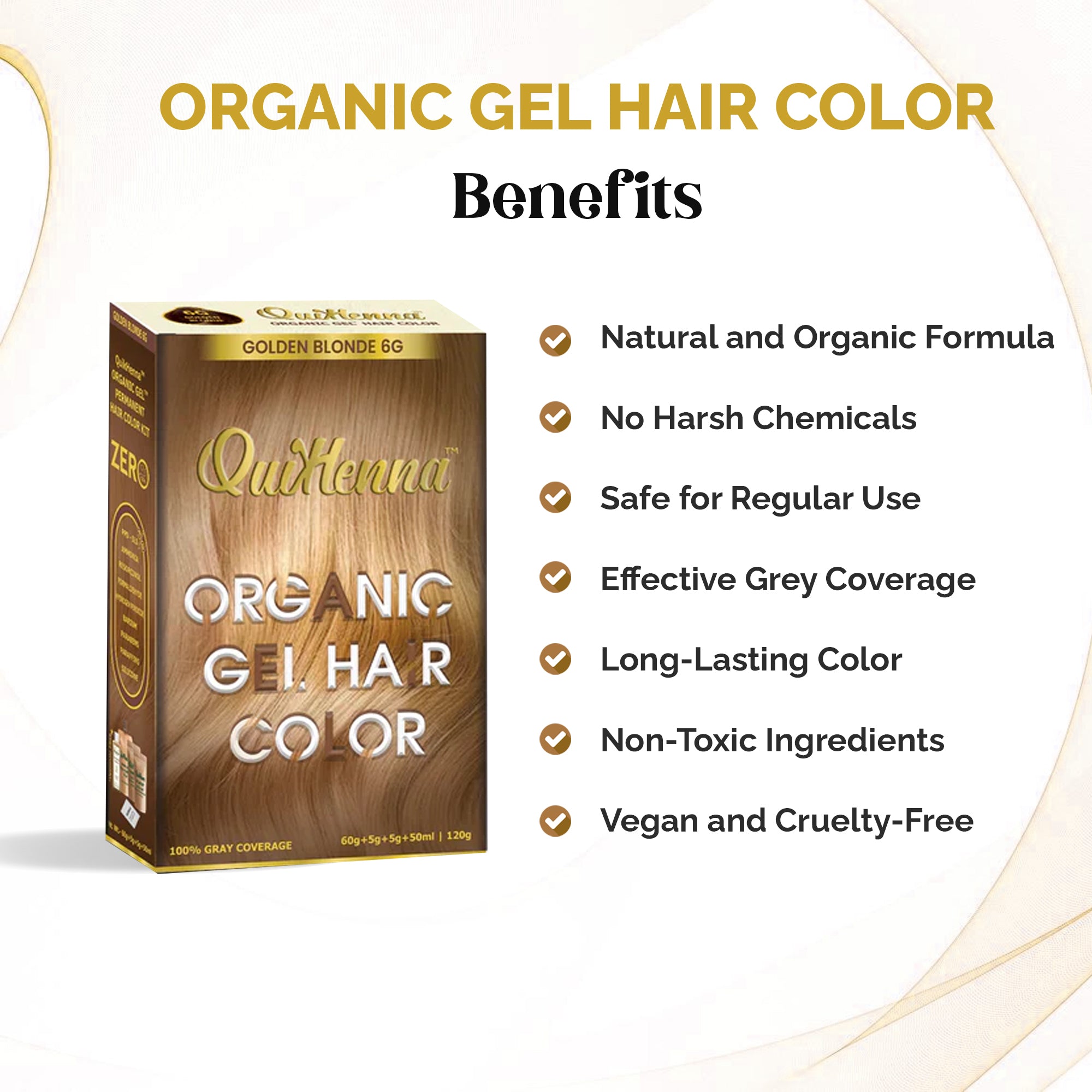 Color your hair the natural way with QuikHenna Organic Gel Hair Color, a PPD-free, Ammonia-free, and Hydrogen Peroxide free formula enriched with the Quick Henna Patented Hair Care Molecule. This smooth, non-drip gel-based color offers 100% grey coverage, vibrant tone, and deep nourishment — all in one easy step.